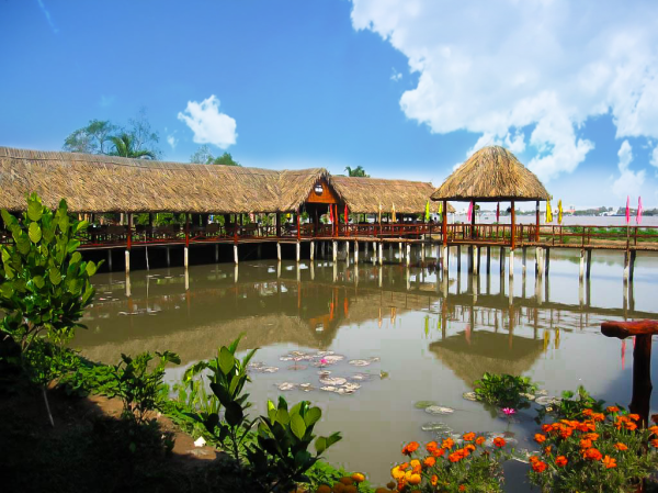 Lan Vuong Tourist Area is located in Ben Tre City, just over 90 km from Saigon. From the bare plots of land, this place has been designed to create a waterfront tourist garden, in which the small river stretches the entire area. This place has delicious food and the open space, which is extremely cool with orchard, sweet fruit, flowers, you can also find that rowing boat is very attractive activity.
