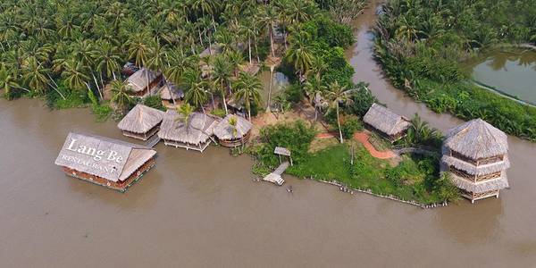 To reach Lang Be, you can turn right at the foot of Rach Mieu bridge towards Con Phung Island. You should go in the morning to eat, take pictures, take a rest, then play sports games, then return to the city in the afternoon.