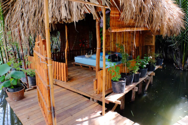 Located less than 20 minutes drive from Ho Chi Minh City, Springfield Cottage (A16 / 485 R8 Phong Phu Street, Hamlet 1, Phong Phu Commune, Binh Chanh District) attracts visitors with a separated space. Completely out of the rhythm of living in the middle of the city. Particularly, homestay also impresses visitors with the hut floating on the water.