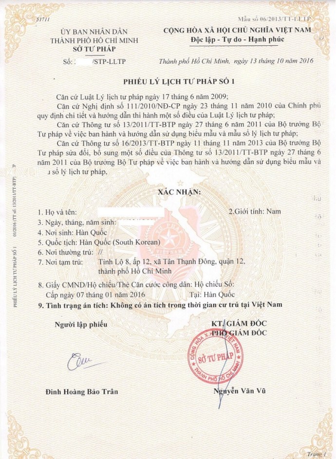 - Procedures for applying a Vietnamese Judicial Record certificate for Vietnamese and foreigners
